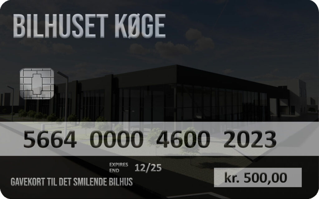 Hos Bilhuset Køge, Det Smilende Bilhus, har du altid mulighed for at bestille et gavekort, som kan bruges i alle vores afdelinger. Du bestemmer selv beløbet på gavekortet, som efter bestilling vil blive fremsendt til dig på mail.